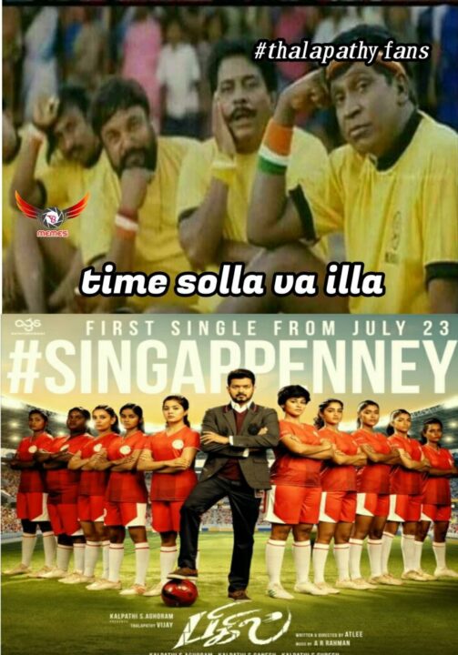 பிகில் படத்தின் பாடல் இன்று ரிலீஸாகும் என்று அறிவிக்கப்பட்ட நிலையில் நேரம் சொல்லாததால் ரசிகர்கள் நேரத்தை கேட்டு மீம்ஸ்களை பறக்கவிட்டுள்ளனர்.