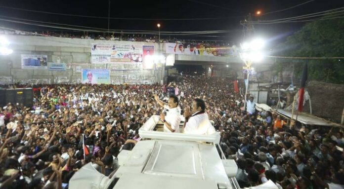 வேலூரில் திமுகவினர் வாக்குக்கு பணம் கொடுத்ததாக ஆதாரப்பூர்வமாக நிரூபிக்கபட்ட பின் தேர்தல் ஆணையத்தால் நிறுத்தப்பட்ட தேர்தல் வருகின்ற ஆகஸ்ட் 5 ஆம் தேதி அன்று மீண்டும் நடைபெற உள்ளது. இத்தேர்தலில் திமுக சார்பில் போட்டியிடும் கதிர் ஆனந்தை ஆதரித்து, அணைக்கட்டு பகுதிகளில் அக்கட்சியின் தலைவர் மு.க. ஸ்டாலின் நேற்று இரவு தேர்தல் பிரச்சாரம் மேற்கொண்டார்.